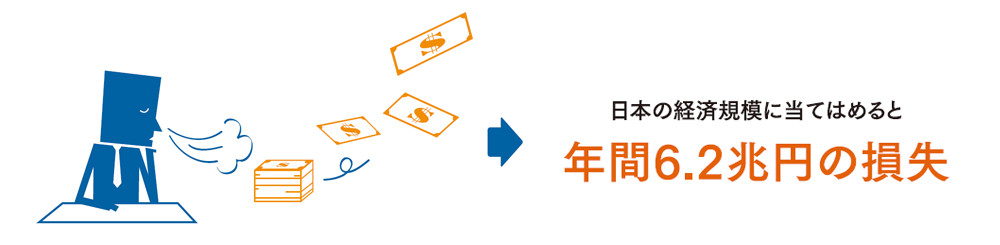 健康に問題がありながら出社し、生産性が低下している状態を「プレゼンティーイズム」と呼びます。アメリカのある研究は、このプレゼンティーイズムが、病欠(アブセンティーイズム)より、企業に対してはるかに大きな損失を与えていると報告しています。その額、全米で年間1500億ドル。アメリカの経済規模を日本の2.8倍とすると、我が国では年間6.2兆円。※2 無視できる規模の金額ではありません。